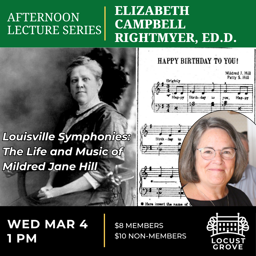 Did you know that the Happy Birthday song was written in Louisville? Yes, the most-sung melody in the world (copyright 1893) was penned right here in our hometown by Mildred J. Hill — composer, pianist, music teacher, and ethnomusicologist. Learn more about the life and times of this talented woman through her many accomplishments from Elizabeth Campbell Rightmyer, Ed.D.