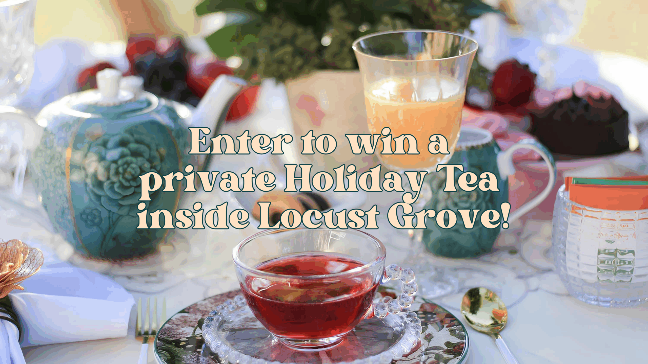 A special & rare opportunity to celebrate in the 1790s historic house. Bid on your chance to win an all-inclusive event for up to 25 people in the Formal Parlor on the Second Floor. The tea will take place on Saturday, December 20th from 2:00-4:00 pm and includes fine tea, exquisite cakes, sumptuous scones, delicate sandwiches and sparkling champagne, and a full tour of Locust Grove’s “A ’60s Christmas” exhibition.